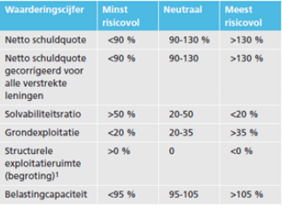 De netto schuldquote, de solvabiliteitsratio en de structurele exploitatieruimte worden geclassificeerd in categorie ‘meest risicovol’. Deze kengetallen zijn daarmee verslechterd ten opzichte van de kengetallen in de periode 2026 tot en met 2029. De kengetallen grondexploitatie en belastingcapaciteit worden nog steeds als ‘minst risicovol’ betiteld. Waarbij de belastingcapaciteit, sec gezien vanuit deze ratio's, ruimte biedt voor belastingverhogingen om keuzen ten aanzien van het begrotingssaldo en voorzieningenniveau desgewenst te dekken.