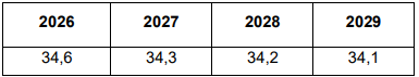 Het begrotingssaldo voor de periode 2026 tot met 2029 is als volgt: